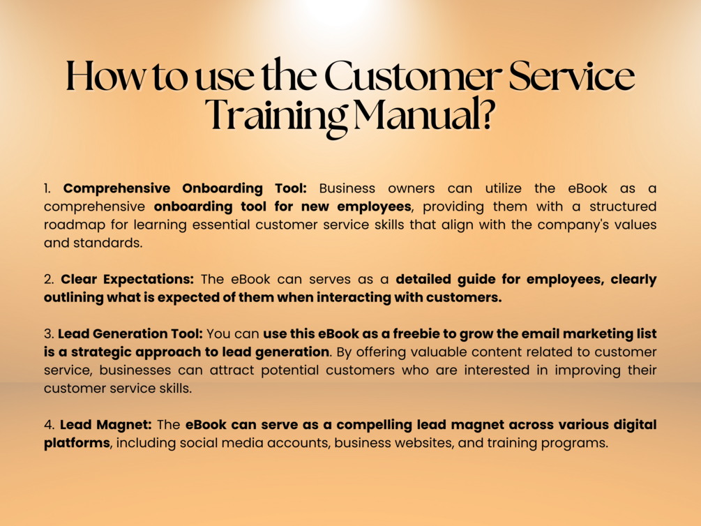 ✨This eBook is perfect for businesses of all sizes and industries that are committed to delivering exceptional customer service. Whether you're a startup looking to establish strong customer relationships from the outset or a well-established company seeking to enhance your customer service standards, this manual is tailored to meet your needs.