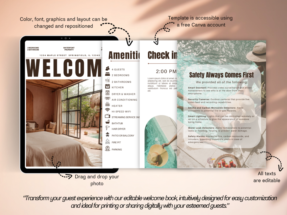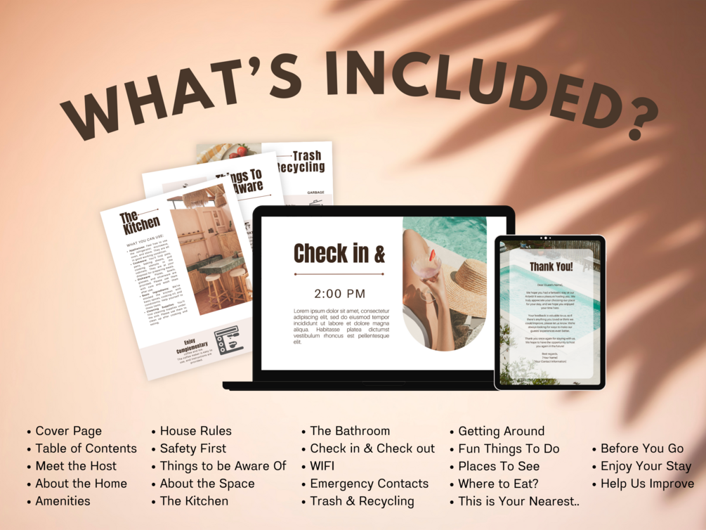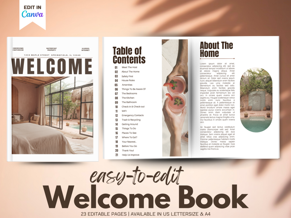 Don't settle for a generic welcome book. Elevate your Airbnb hosting experience with our customizable Canva template and leave a lasting impression on your guests! Get started today and set the stage for unforgettable stays.