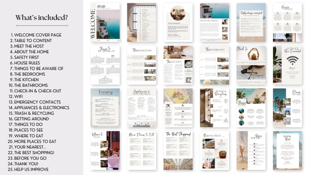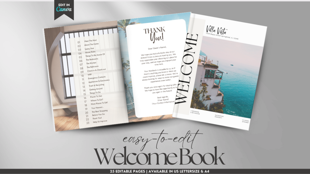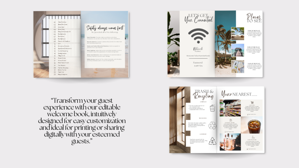 Don't settle for a generic welcome book. Elevate your Airbnb hosting experience with our customizable Canva template and leave a lasting impression on your guests! Get started today and set the stage for unforgettable stays.